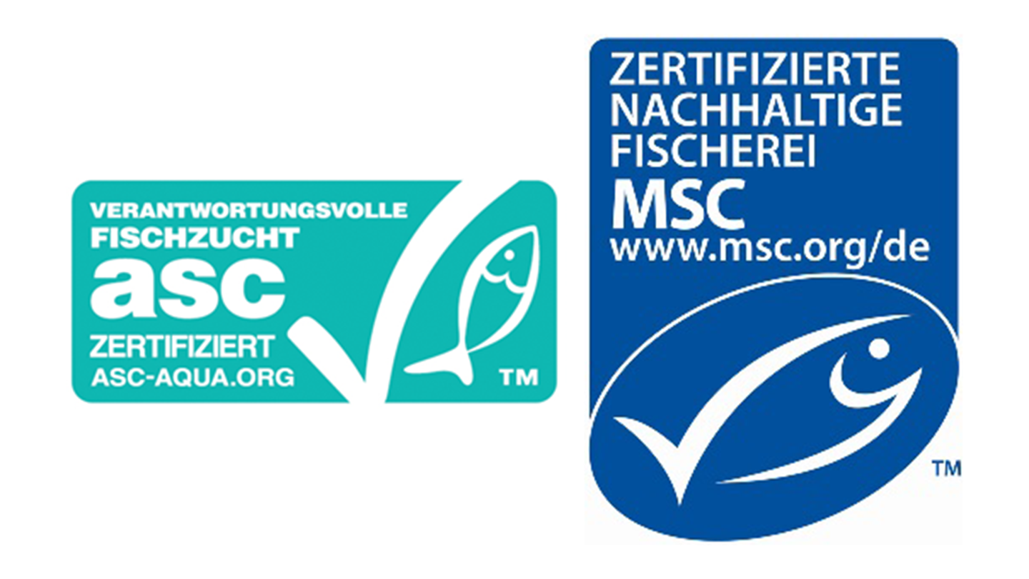Wir legen grossen Wert auf Nachhaltigkeit und Transparenz. Deshalb sind wir ASC- (Aquaculture Stewardship Council) und MSC-zertifiziert (Marine Stewardship Council). Diese Siegel stehen für verantwortungsvolle Fischerei und nachhaltige Aquakultur – zum Schutz der Meere, der Artenvielfalt und für eine nachvollziehbare Herkunft unserer Produkte.
