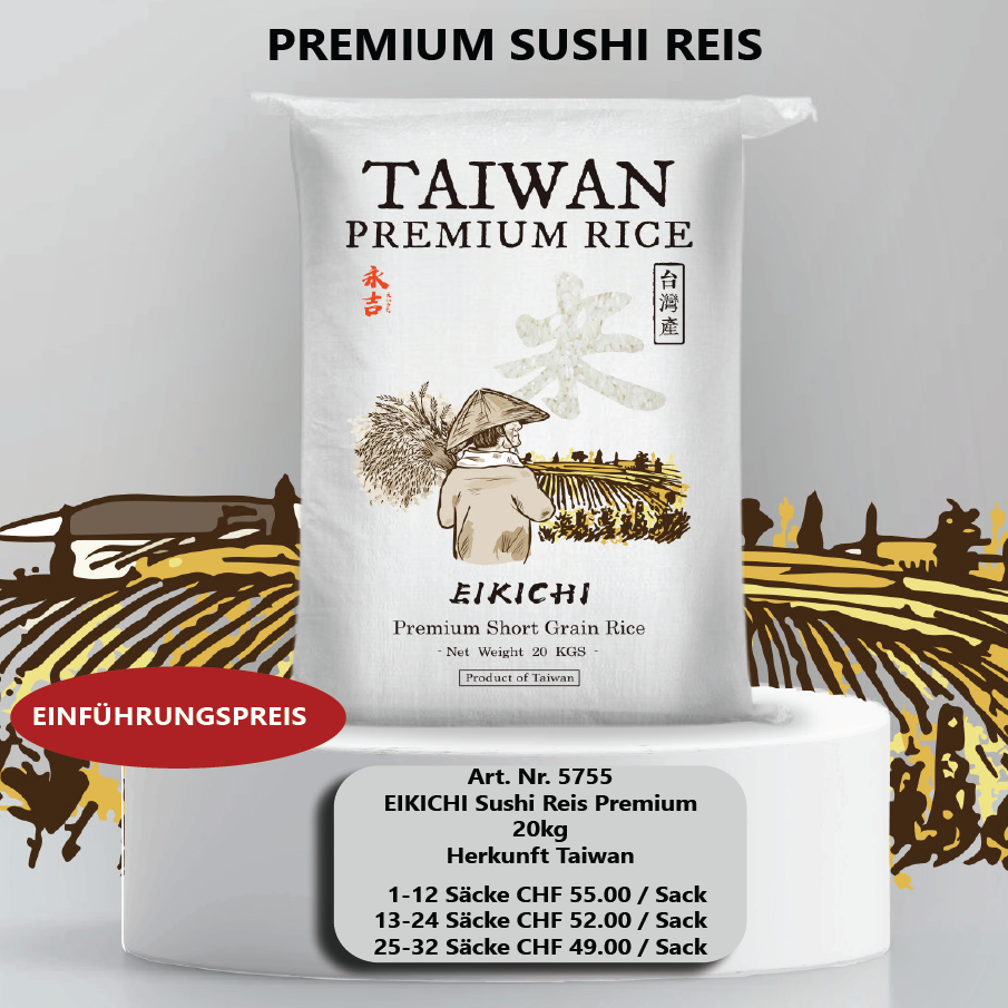 Erleben Sie die Reinheit eines Reises, der für die gehobene japanische Küche und wahre Geniesser erschaffen wurde. EIKICHI bringt Ihnen exzellente Qualität direkt von den fruchtbaren Feldern Taiwans.